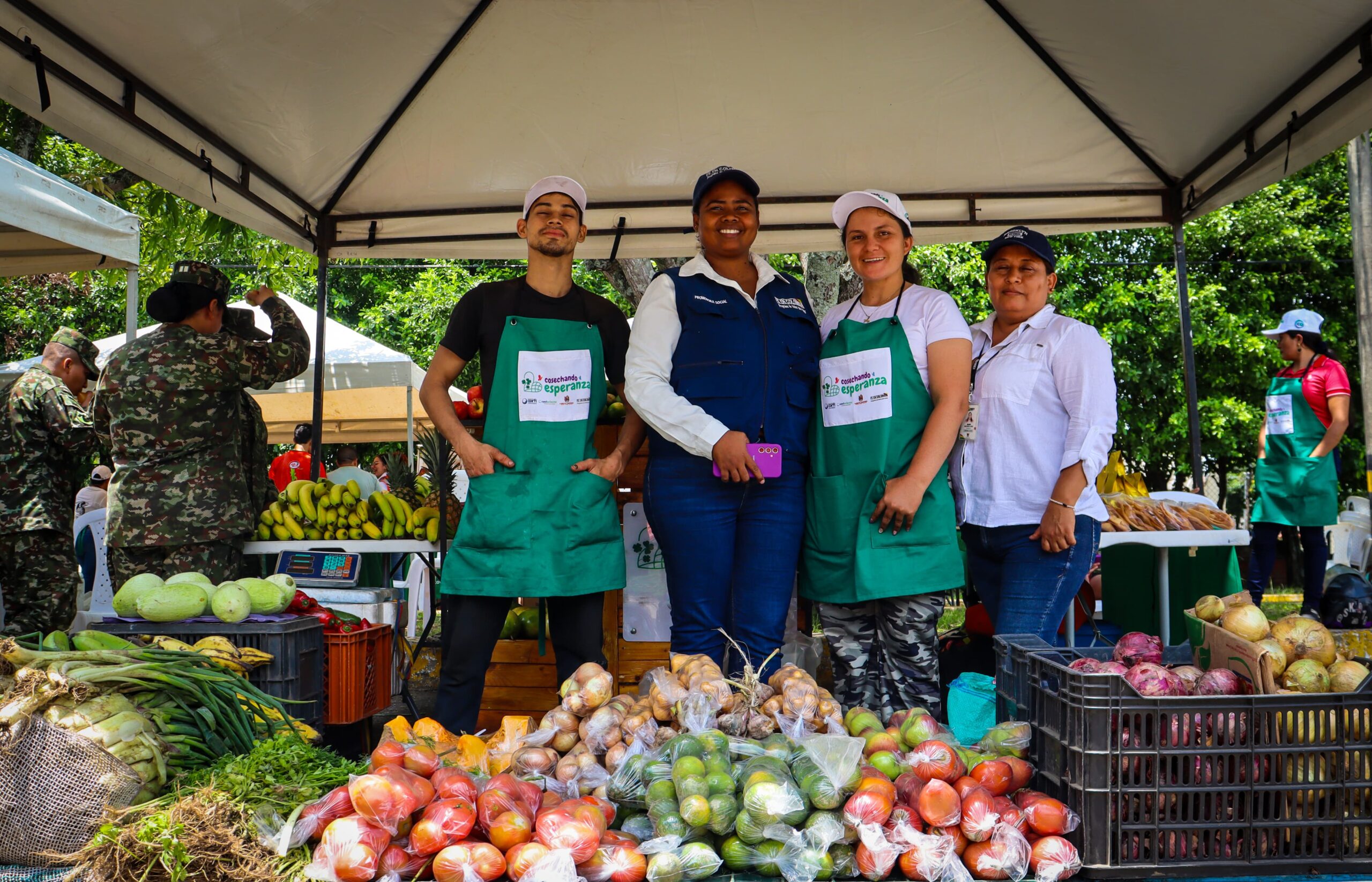 Este encuentro, reunió a más de 120 familias de oficiales, suboficiales y soldados del cantón militar, quienes con entusiasmo acogieron a 20 productores locales provenientes de distintas veredas y corregimientos de la región. En sus puestos ofrecieron productos típicos como plátano, yuca, café, queso, huevos, entre otros, de excelente calidad y a precios justos.