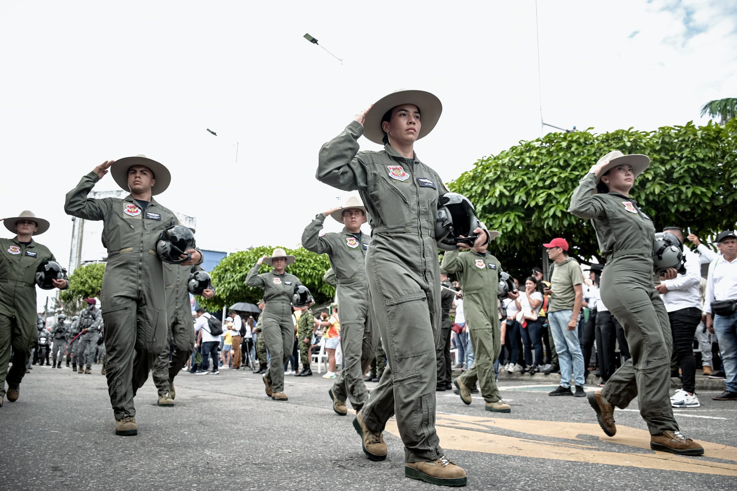 El recorrido del desfile abarcó más de dos kilómetros y contó con la participación de cerca de 1.500 integrantes de las Fuerzas Militares y de Policía. Por su parte, la Fuerza Aeroespacial Colombiana desfiló con un bloque compuesto por pilotos, tripulantes, oficiales, suboficiales, soldados de aviación y personal del Escuadrón de Seguridad y Defensa de Bases 305. También hicieron parte del dispositivo los binomios caninos, quienes reflejan una de las capacidades diferenciales de esta Unidad para cumplir su misión institucional.