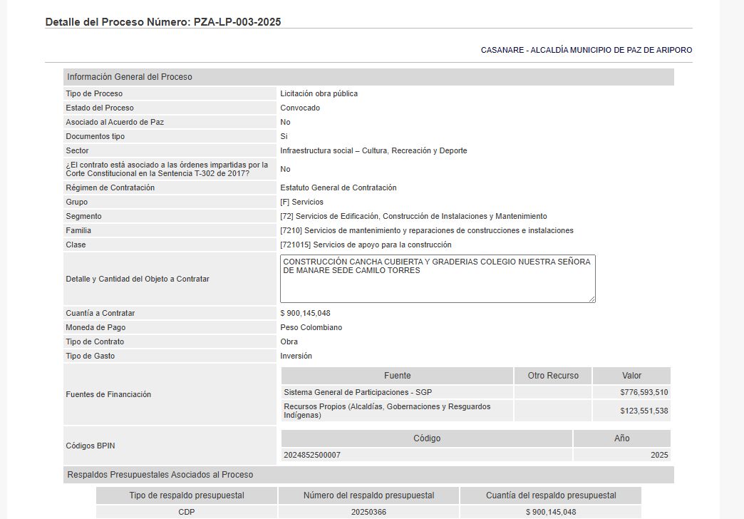 Y es que algunos de los proponentes que participan del proceso publicado en SECOP I denunciaron lo que para ellos sería una presunta “Triquiñuela” o error por desconocimiento, que vulneraría sus derechos en el proceso de Selección. Se trata del proceso No. PZA-LP 003- 2025 para la construcción de una cancha cubierta y graderías par el colegio Nuestra Señora de Manare Sede Camilo Torres.
