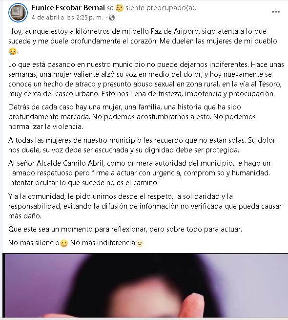 ¿Por qué en los dos casos de violación a mujeres del municipio de Paz de Ariporo no ha habido pronunciamiento contundente del alcalde ante la gravedad de los hechos con la misma inmediatez y rigurosidad que ataca a los medios que intentan informar lo que ocurre en materia de seguridad en el municipio?